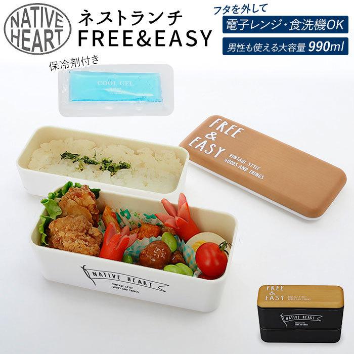 お弁当箱 2段 保冷剤付き Native Heart メンズネストランチ Freeeasy 990ml 弁当箱 ランチボックス 大容量 食洗機対応 レンジ対応 メンズ おしゃれ 二段 食洗機ok レンジok 二段弁当箱 コンパクト